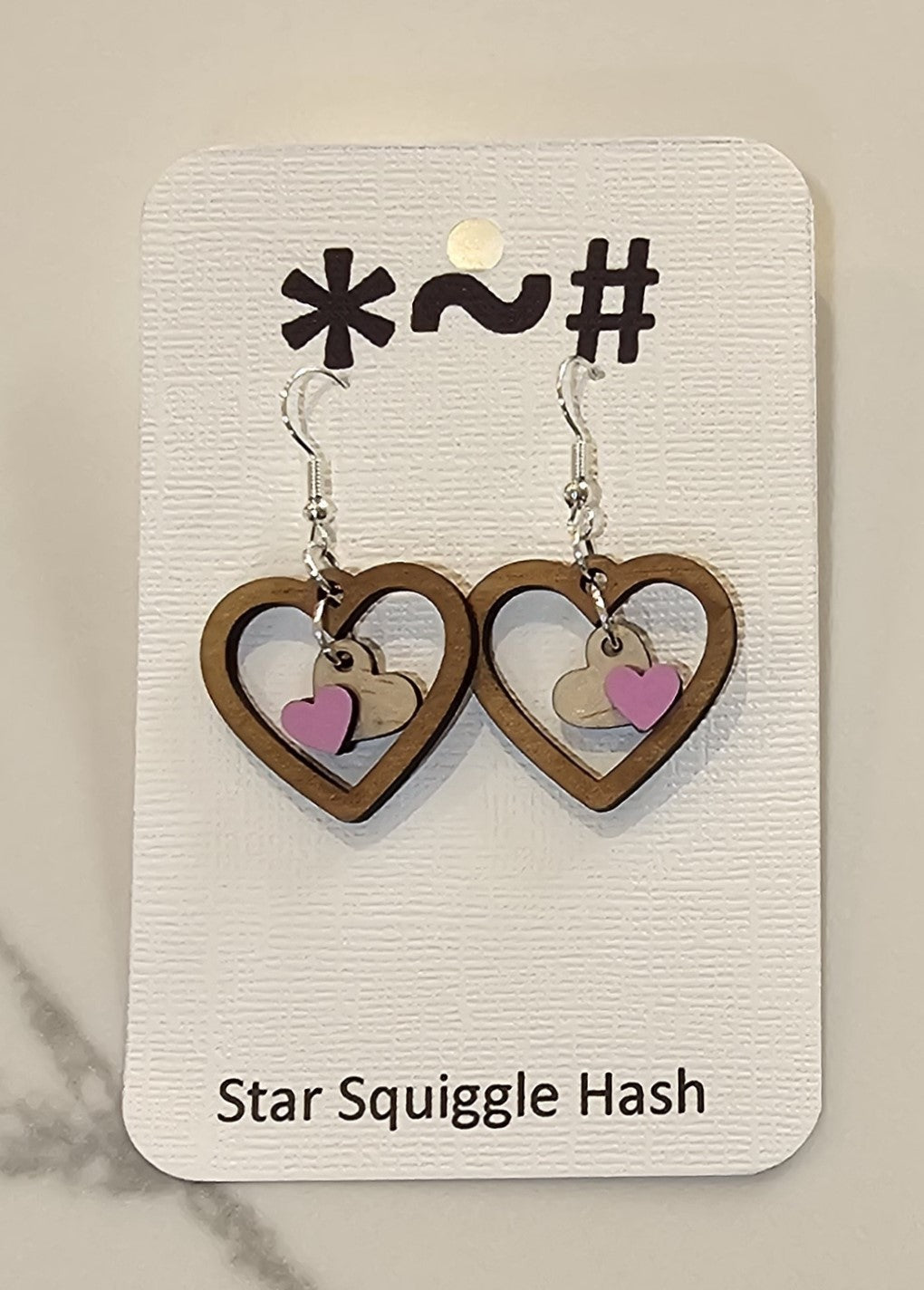 These little love-filled earrings are here to steal hearts (and maybe a few compliments). Laser cut from raw pine plywood, then stained and hand painted for extra charm, each pair is slightly unique — just like love itself… but less complicated.